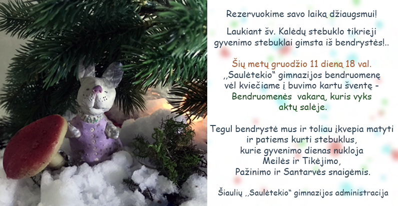Lapkričio 27 d. biologijos mokytoja Agnė Rocienė ir dailės mokytoja Rasa Prišmontienė pakvietė į edukacinę veiklą „Daigintų sėklų stebuklai: nuo biologijos iki lėkštės“, kur tyrinėjant galima buvo išsiaiškinti, kaip iš mažos sėklos gimsta gyvybinga daigų galia. Atrastos biologijos subtilybes, išbandytas daiginimas ir žaliųjų supermaisto stebuklų degustacija padėjo suprasti, kad žmogus mokosi visą gyvenimą – ir kartais mokymasis prasideda nuo mažo daigo!