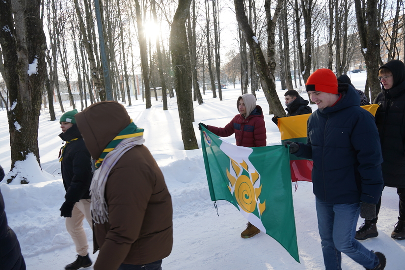 Vasario 16-oji, Lietuvos valstybės atkūrimo diena Šiauliuose prasidėjo šventine Ryto eisena Lieporių parko Signatarų alėjoje. Pajudėjusi eisena priminė ilgą ir storą virvę, susuktą iš mažesnių virvučių, dominuojančių geltona, žalia ir raudona spalvomis.