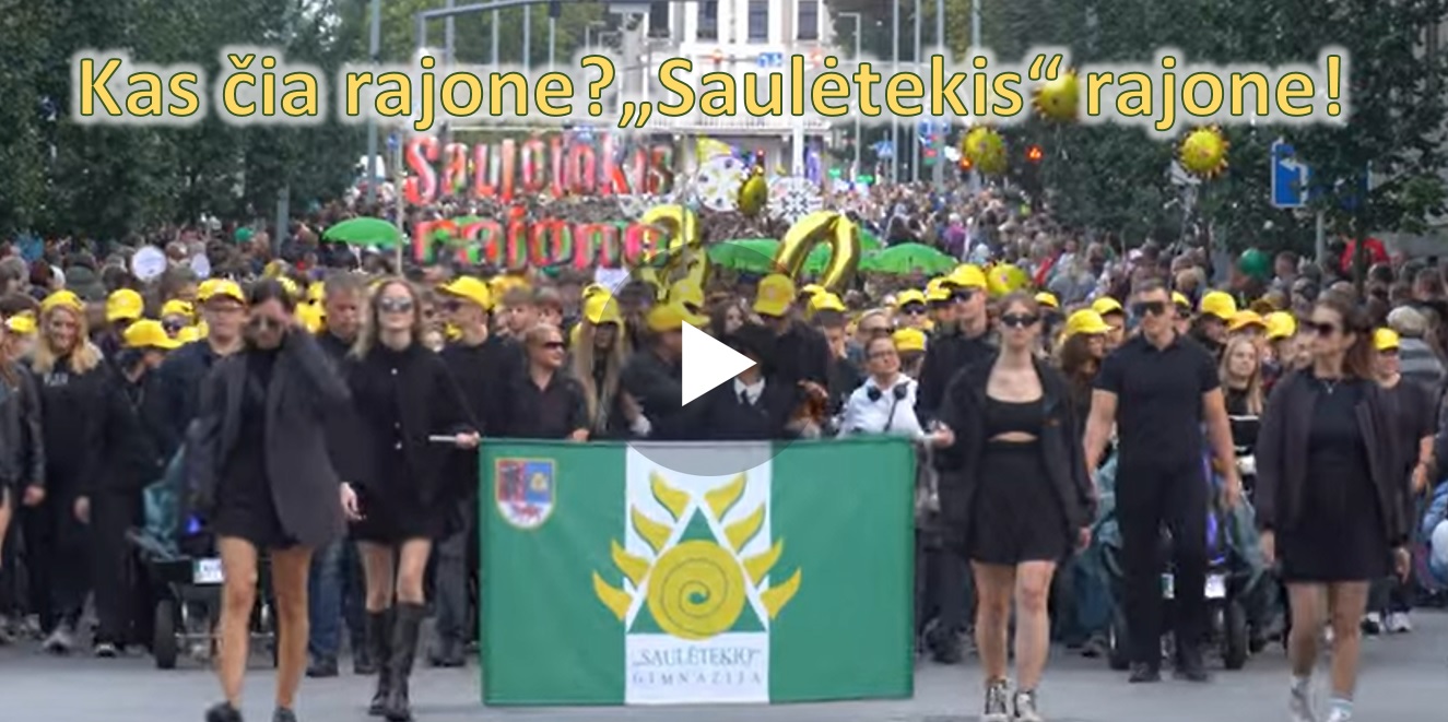 Mūsų gimnazijos atstovai žingsniavo Šiaulių estrados link dainos „Kas čia rajone – Saulėtekis rajone“ ritmu.