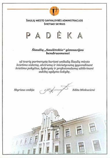„Saulėtekio“ gimnazija dėkoja: