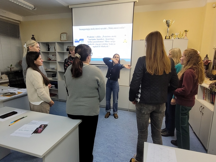 Lapkričio 26 d. mokytojos V. Čėsnienė ir Z. Guzienė pristatė praktinę veiklą mokiniams „Švietimo ateitį kuriame šiandien - koučingo keliu į pasiekimus! Motyvacija mokytis visą gyvenimą: kaip ją ugdyti ir išlaikyti.“ Suaugusieji išbandė savęs pažinimo testus, motyvaciją stiprinančius metodus, aptarė labiausiai tinkančius mokymosi būdus, įvardijo mokymosi planavimo žingsnius bei nusimatė tikslus. Tokia patirtis dar kartą patvirtino, kad motyvacija gimsta tada, kai žmogus pats pamato mokymosi naudą ir jaučia palaikymą, augimą ir tobulėjimą.